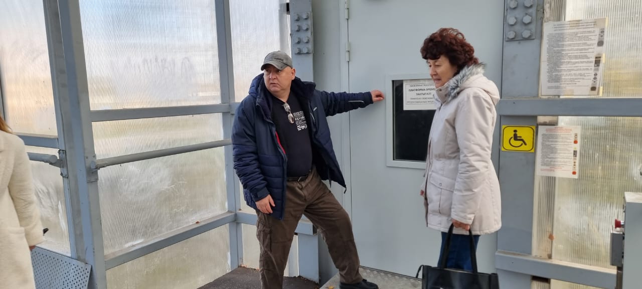 3-й объект - это прилегающая территория к лифту, который находится на конечной автобусной остановке Леонидовка, через железнодорожное полотно, так называемый Леонидовский треугольник, лесопарковая зона и далее к Бауманскому институту и ЖК "Спутник". Годами поднимался вопрос неработающего лифта, годами слышали обещания различных ответственных структур, но, как говорили присутствующие местные жители, лифт не работает уже очень давно, а отсутствие рядом видеонаблюдения способствует безнаказанному вандализму. На этот лесопарковый объект без лифта маломобильным категориям граждан доступ очень затруднён.