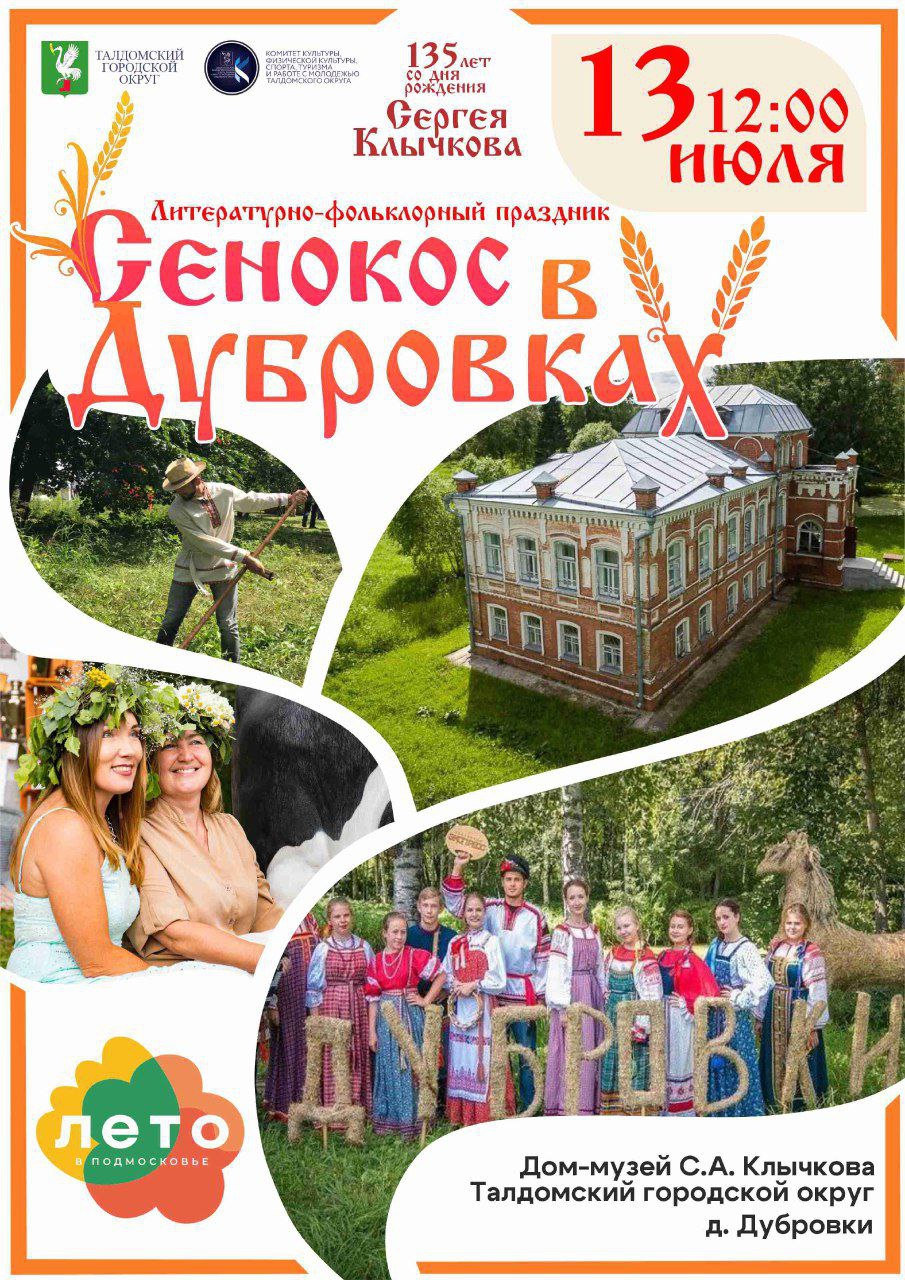 13 июля в 12:00 в доме-музее С.А. Клычкова состоится литературно-фольклорный праздник "Сенокос в Дубровках" в честь 135-летия со дня рождения поэта