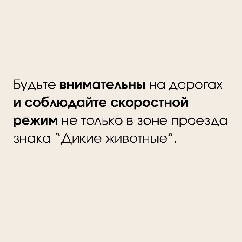 Будьте внимательны и соблюдайте скоростной режим не только в зоне проезда знака «Дикие животные». Как вести себя на дороге? используйте дальний свет при движении вне населённых пунктов и отсутствии встречного транспорта снизьте скорость или плавно остановитесь , если животное появилось где-то вблизи дороги остановитесь , не используйте звуковой сигнал и дайте уйти животному, если оно находится на проезжей части или обочине