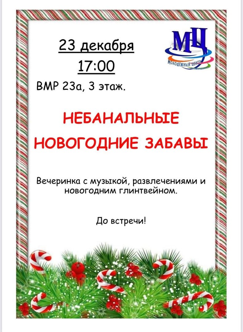 Ждем вас 23 декабря в 17.00 в филиале Молодежки по адресу: Тучково, ВМР, 23А.