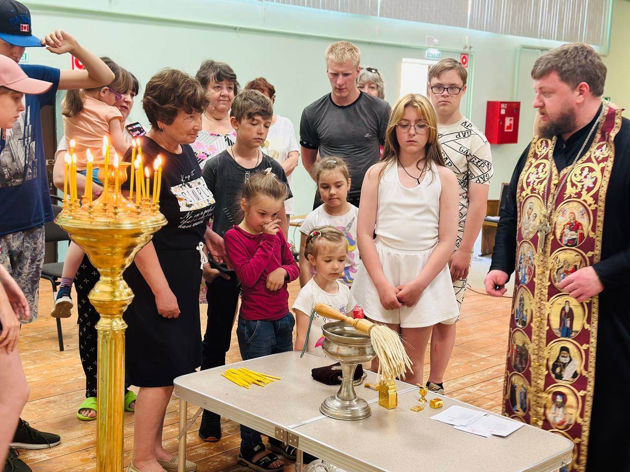 Молебен в пункте временного размещения беженцев в деревне Тарбушево г. о. Коломна
